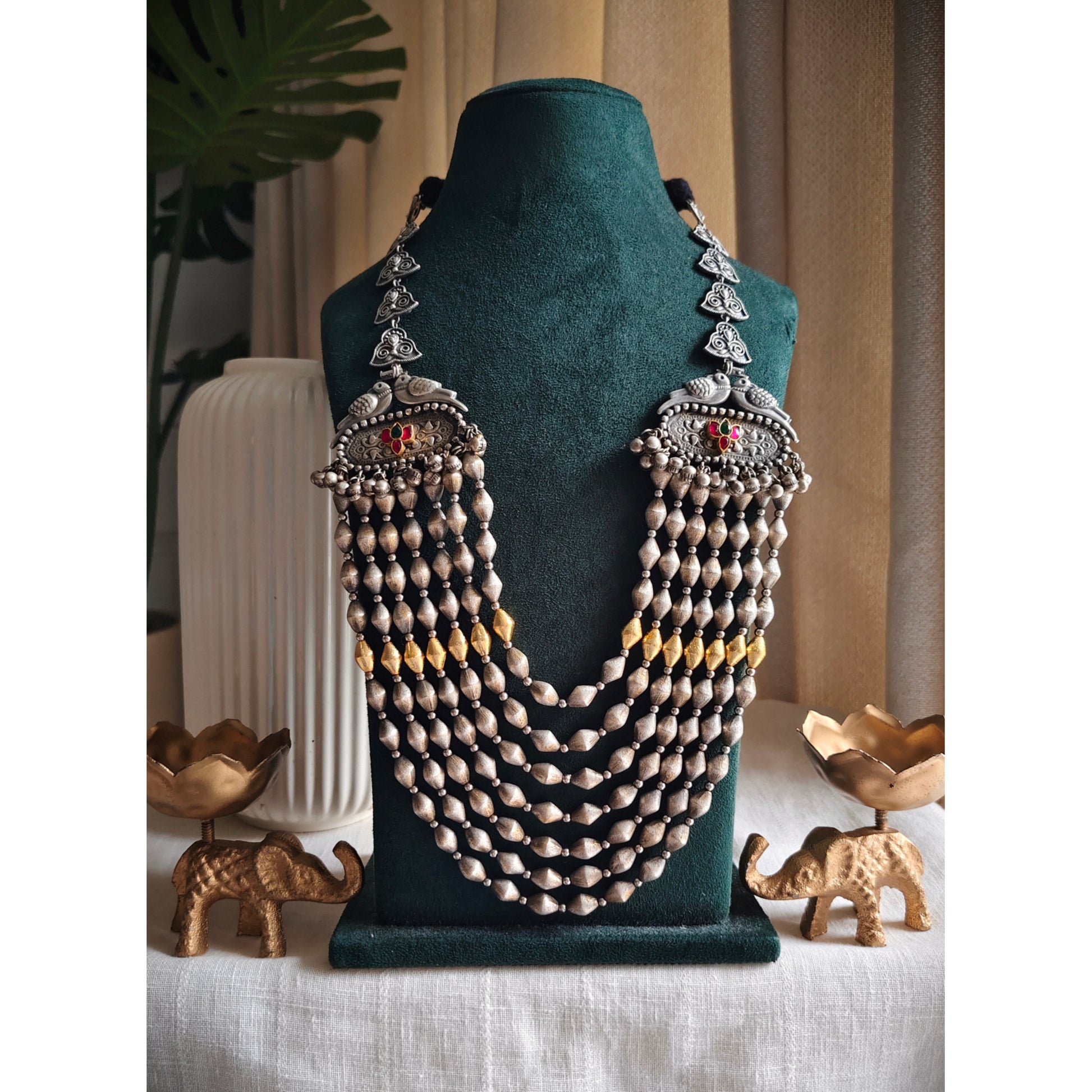 Beautiful Designer Dholki Beads Layered Dual Tone Necklace