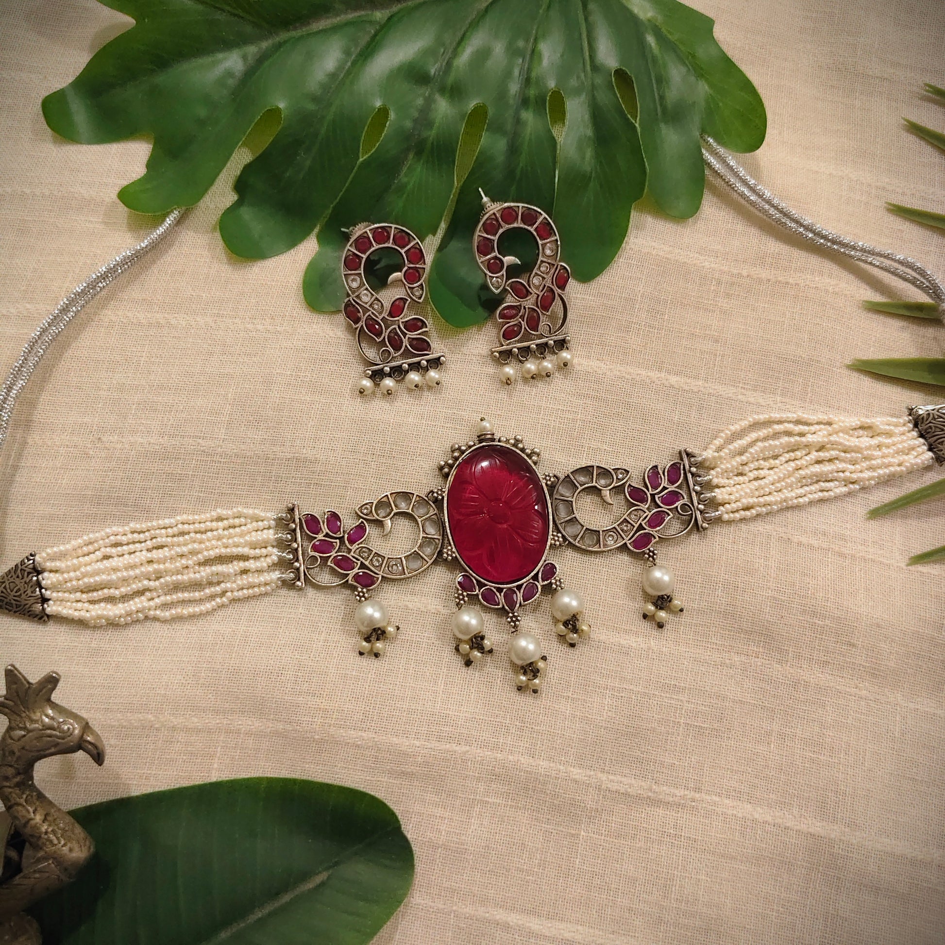 Beautiful Designer Peacock Stone Embedded Choker With Earrings
