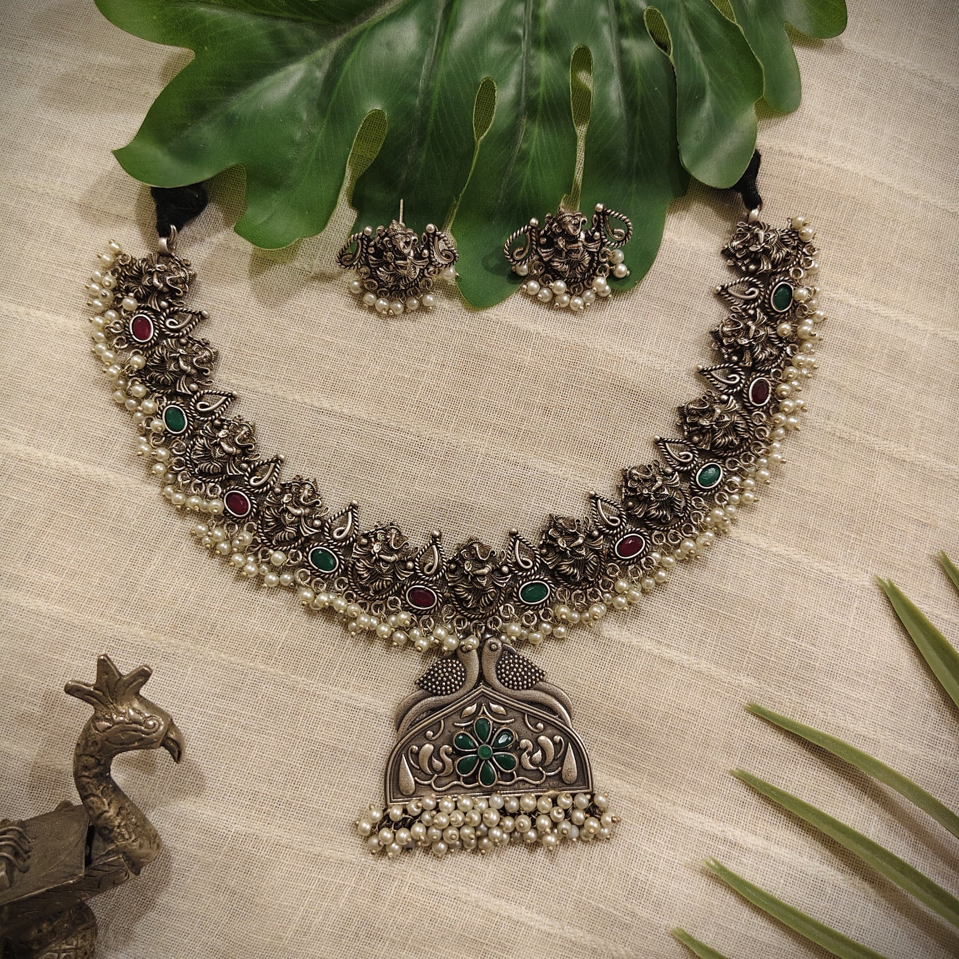 Beautiful Designer Stone Embedded Neckpiece With Earrings