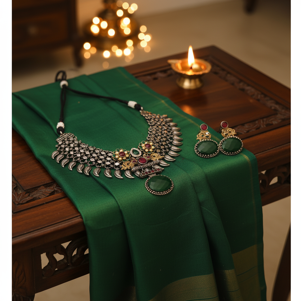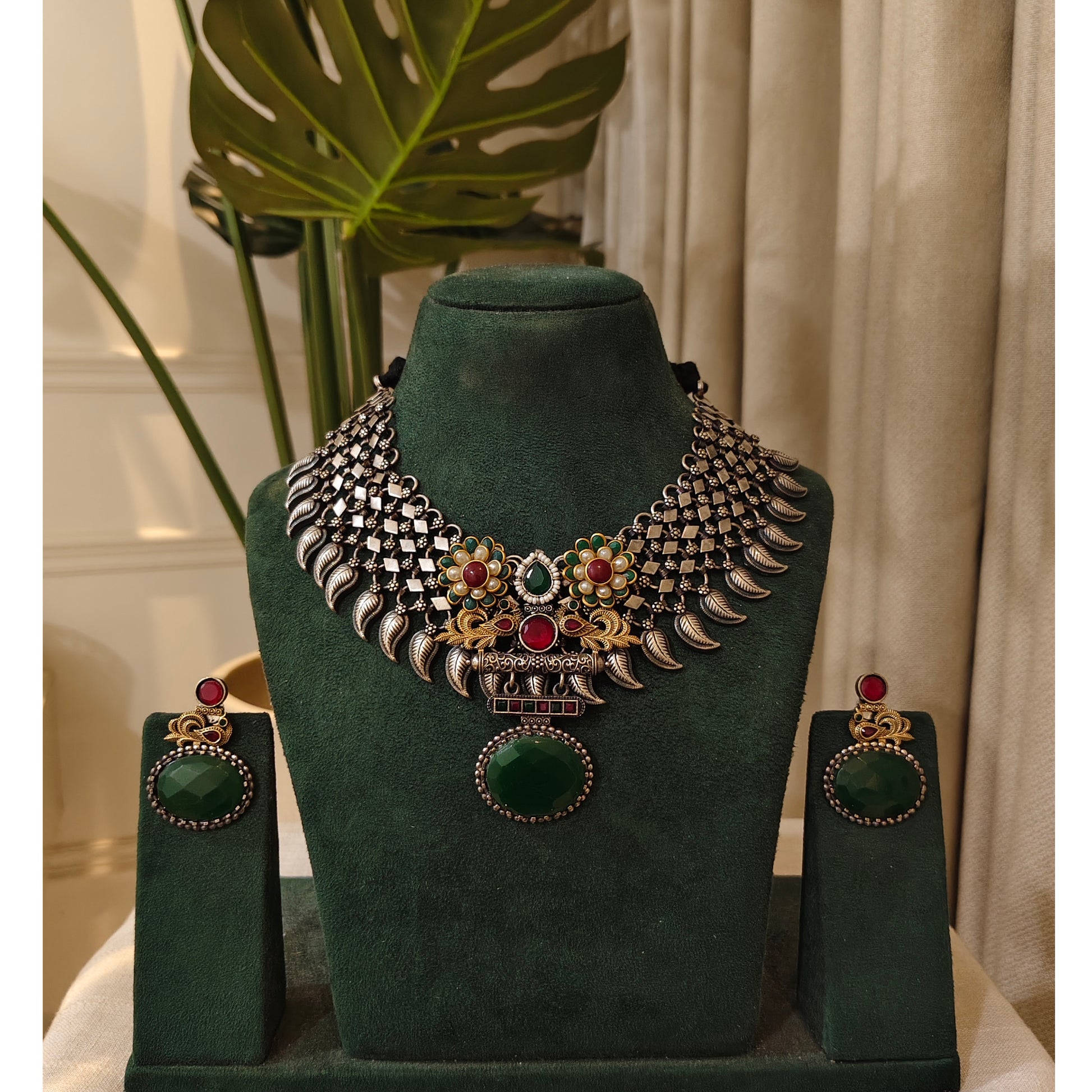 Beautiful Designer Stone Embedded Neckpiece With Earrings