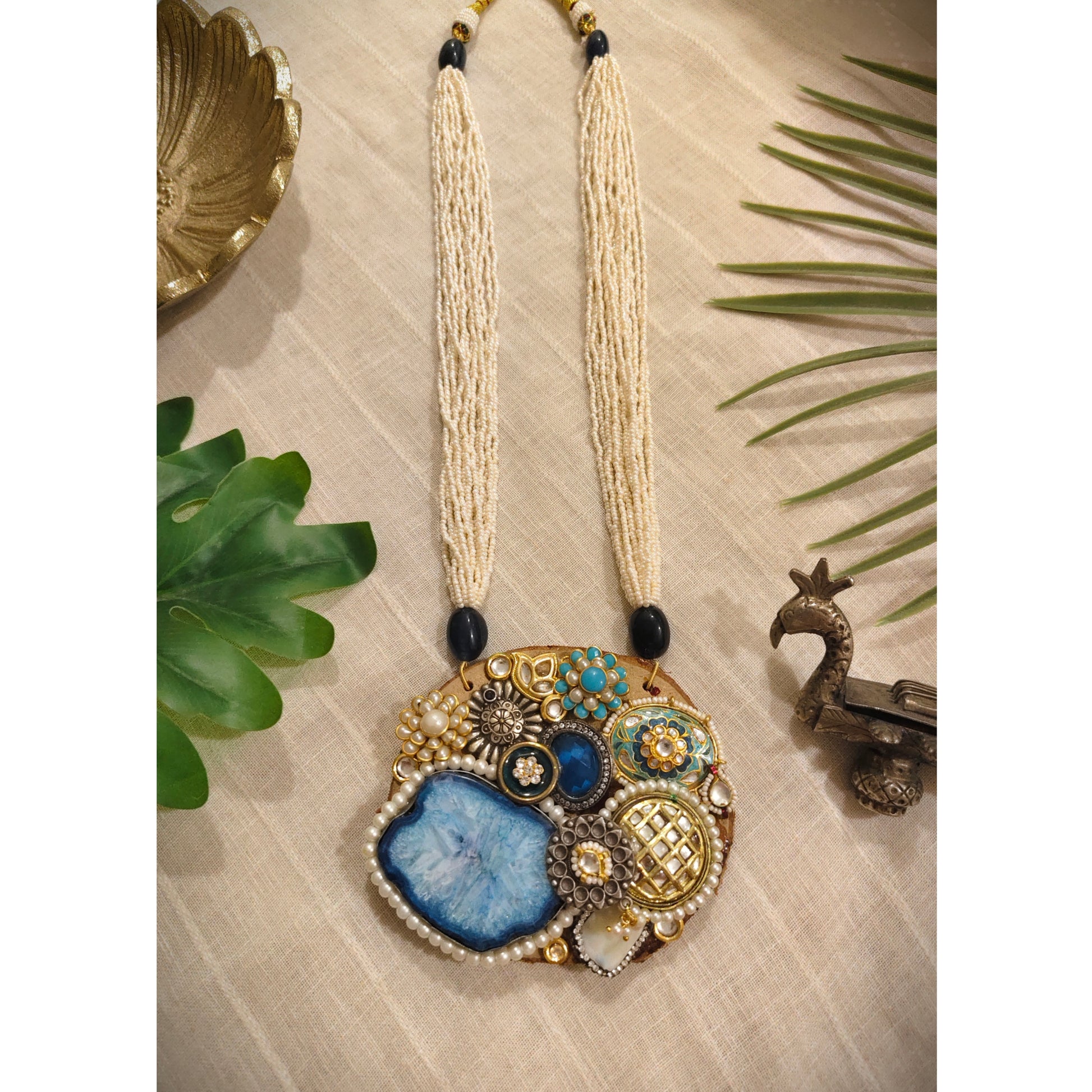 Beautiful Designer Wooden Fusion Pendant Long Necklace